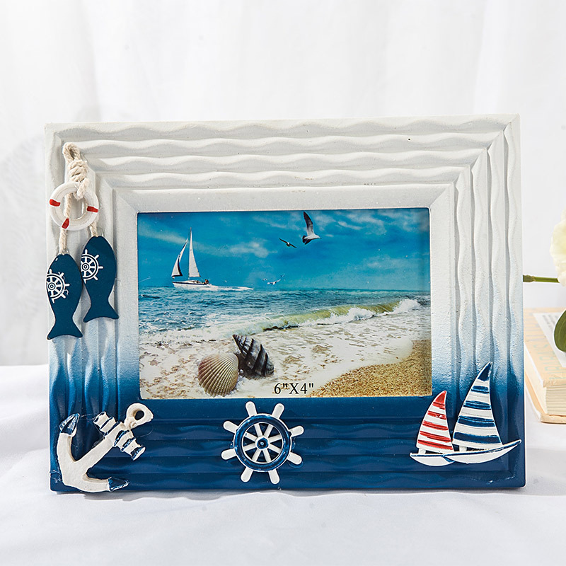 Marine photo frame, summer shell, wooden frame (3)